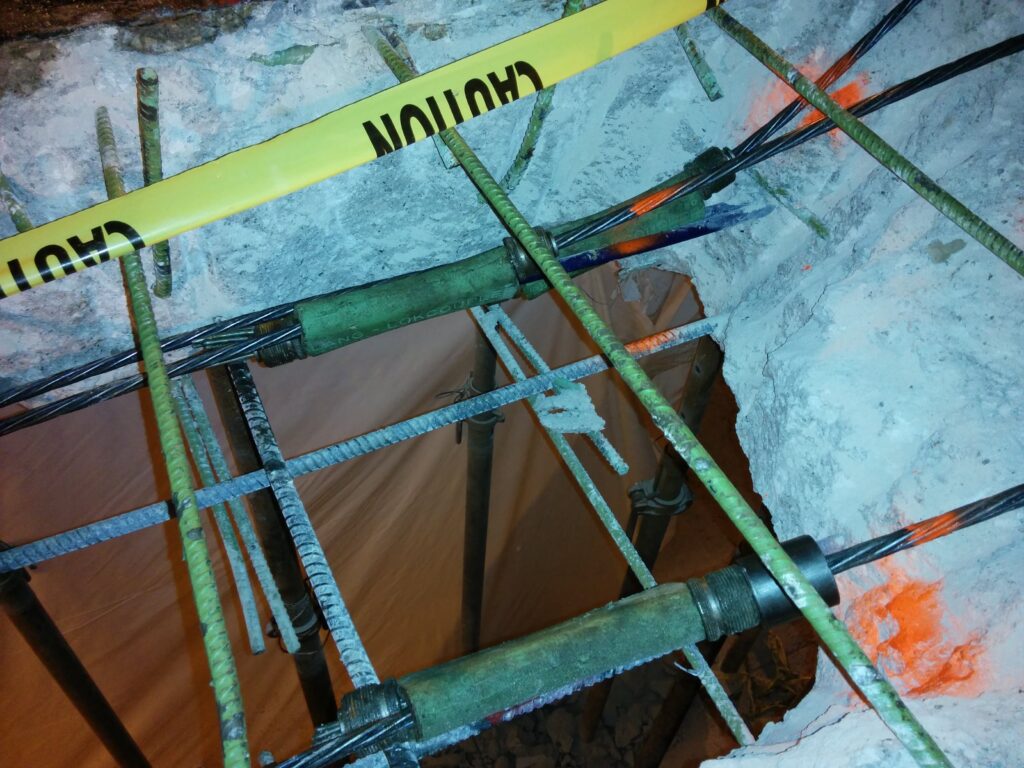 Truesdell Corporation provides specialized post-tension (PT) repair services for parking structures, buildings, and other post-tensioned concrete systems. Post-tension tendons are critical structural components that provide strength and load-carrying capacity, and when they become damaged due to corrosion, impact, or construction deficiencies, repairs must be performed with precision and care. Our team works closely with engineers to evaluate tendon conditions and implement repair solutions that safely restore structural performance.